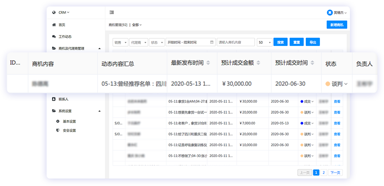 销售人员根据业务进展发布动态,动态关联商机,让老板了解销售人员工作情况,同时通过商机维度也可以看到商机的延续性进展。